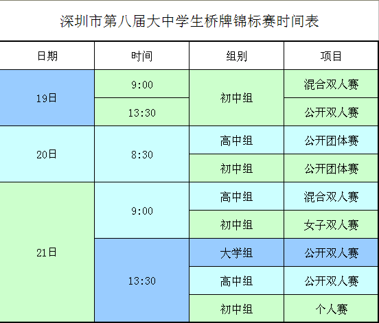 深圳桥牌网深圳桥牌深圳桥协深圳市第八届大中学生桥牌锦标赛
