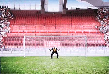 某保险套的厂家看了“伟哥”的广告后,深受启发,于是从国家队里找了一群队员也做了一个广告。画面是:所有队员对着球门狂轰烂炸,广告语:“不管射多少次,射不进去就是射不进去!!!”
