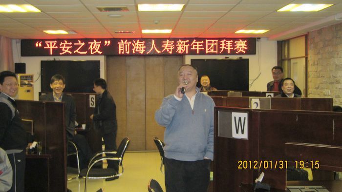 2012年1月31日正月初九,深圳市平安桥牌俱乐部在16F举办了“前海人寿”新年团拜赛。本次比赛也是2012年“平安之夜”会员日的首场活动。