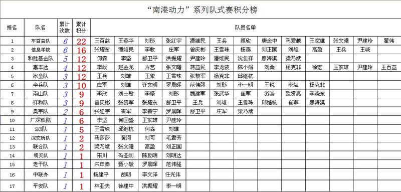 二、              参赛队伍:按“南港动力”系列队式赛积分榜(附后),8的队伍有资格组队参赛,由各队队长负责组队,每队限报4-6人。