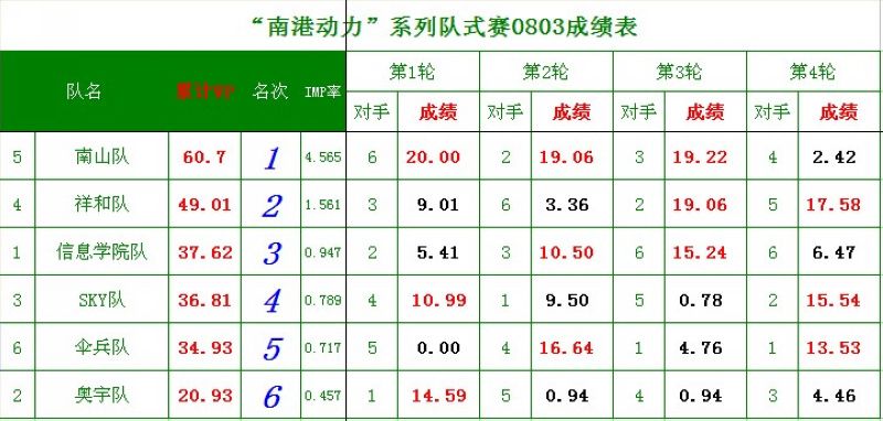 “南港动力”系列队式赛0803