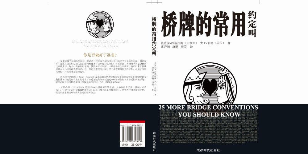 《桥牌的常用约定叫》是加拿大职业桥牌教师和作家芭芭拉?西格拉(Barbara Seagram)“25系列”中非常成功的一本,这次她的搭档是英国畅销桥牌作家大卫?伯德(David Bird)。本书分初级篇、中级篇和高级篇三部分,详解了二十五个约定叫,其中初级篇包括对1NT的卡普里提争叫、伯根加叫、四花色转移叫和赌博性3NT开叫等,中级篇包括排除关键张黑木问叫、对逆叫的英格伯曼应叫、配合显示跳叫和傀儡斯台曼问叫等,高级篇则有迈克尔斯跳叫、意大利式扣叫、挑选满贯的5NT和金鱼草加倍等。本书介绍的约定叫,都是非常有效而常见的叫牌工具,对于国内具备一定水平的桥牌爱好者并不陌生,他们大都知道其中部分或全部约定叫,有些约定甚至是大部份爱好者都在使用的。但即便是正在使用这些约定的牌手,对自己使用的约定也未必了如指掌。本书全面剖析了每个约定叫使用条件、后续发展和其中各种变化,每节均附有要点小结和测验。本书秉承了芭芭拉一贯深入浅出的写作风格,知识点面面俱到的同时可读性极强;但更重要的是,这二十五个约定叫都是非常实用的约定,熟练掌握它们对你一定帮助不小。