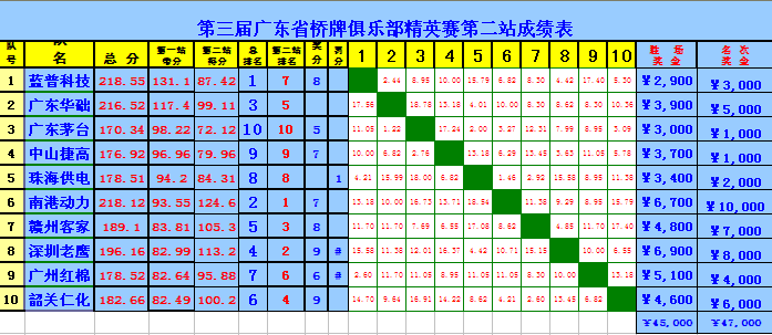 | 第三届广东省桥牌俱乐部精英赛第二站专题 | |