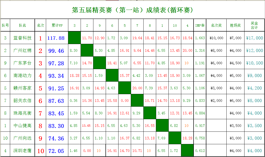 | 广东省第五届桥牌俱乐部精英赛第一站专题 | |
