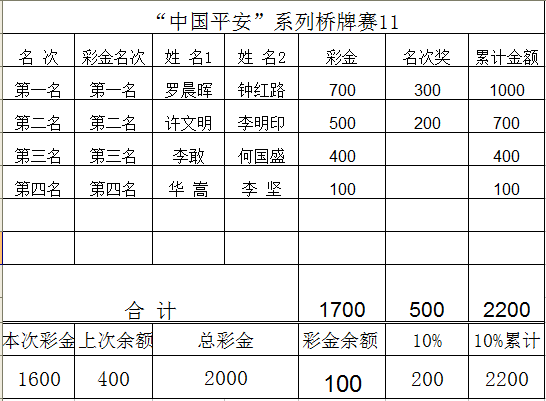 | 2015年“中国平安”系列桥牌赛11 | |