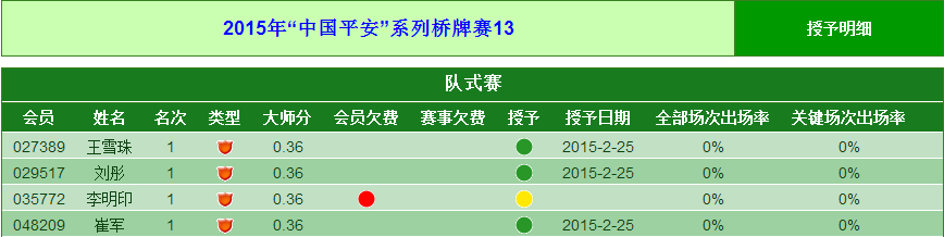 2015年“中国平安”系列桥牌赛13