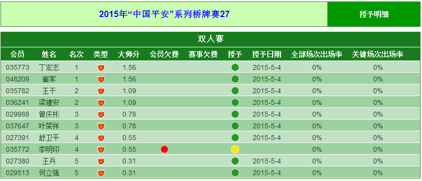 | 2015年“中国平安”系列桥牌赛27 | |