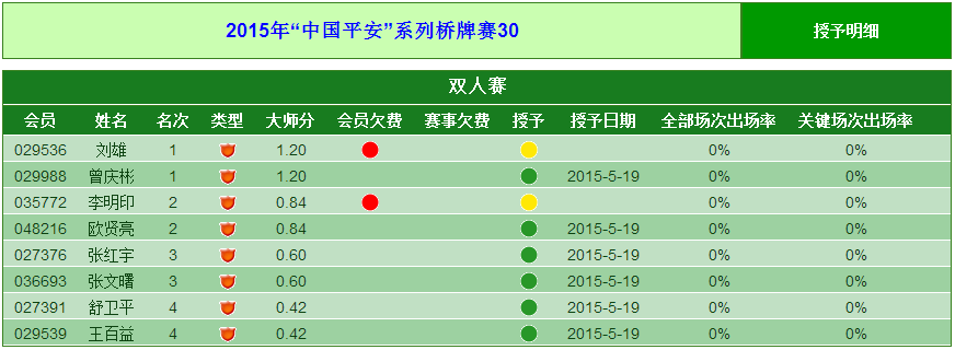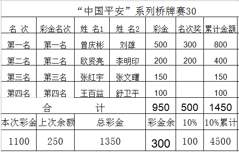 | 2015年“中国平安”系列桥牌赛30 | |