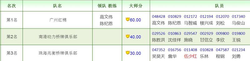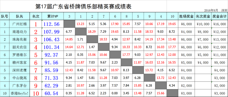 | 第17届广东省桥牌俱乐部精英成绩公布 | |