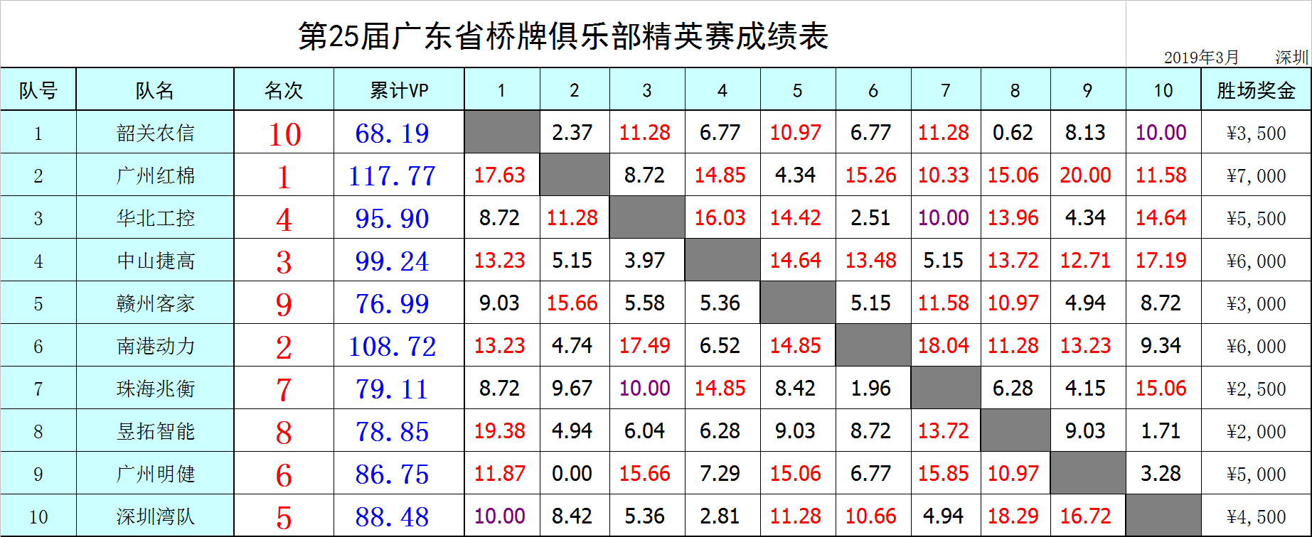 | 第25届广东省桥牌俱乐部精英赛成绩公布 | |