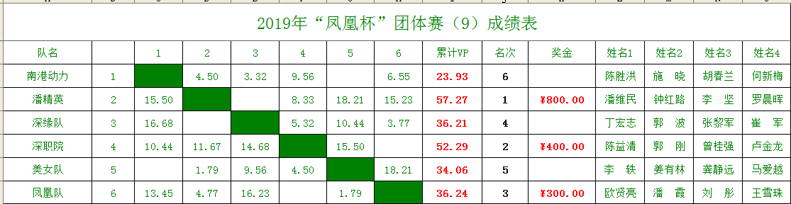 深圳桥牌网深圳桥牌深圳市桥牌活动中心2010~2020年成绩与公告2019年“凤凰杯”团体赛(9)