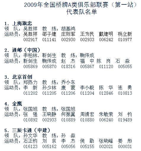 | 2009年全国桥牌A类俱乐部第一站专题 | |