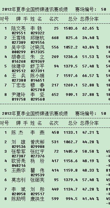 | 深圳“体彩杯”全国桥牌夏季通讯赛 | |
