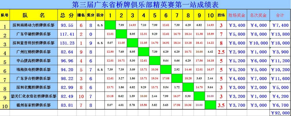 | 第三届广东省桥牌俱乐部精英赛第一站专题 | |