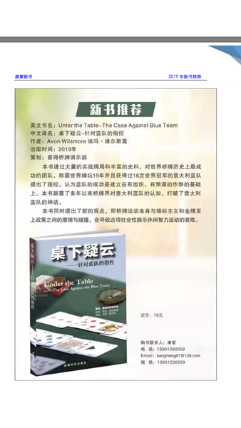 深圳桥牌网深圳桥牌深圳市桥牌活动中心2010~2020年成绩与公告2019年康蒙新书预定