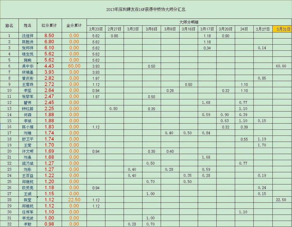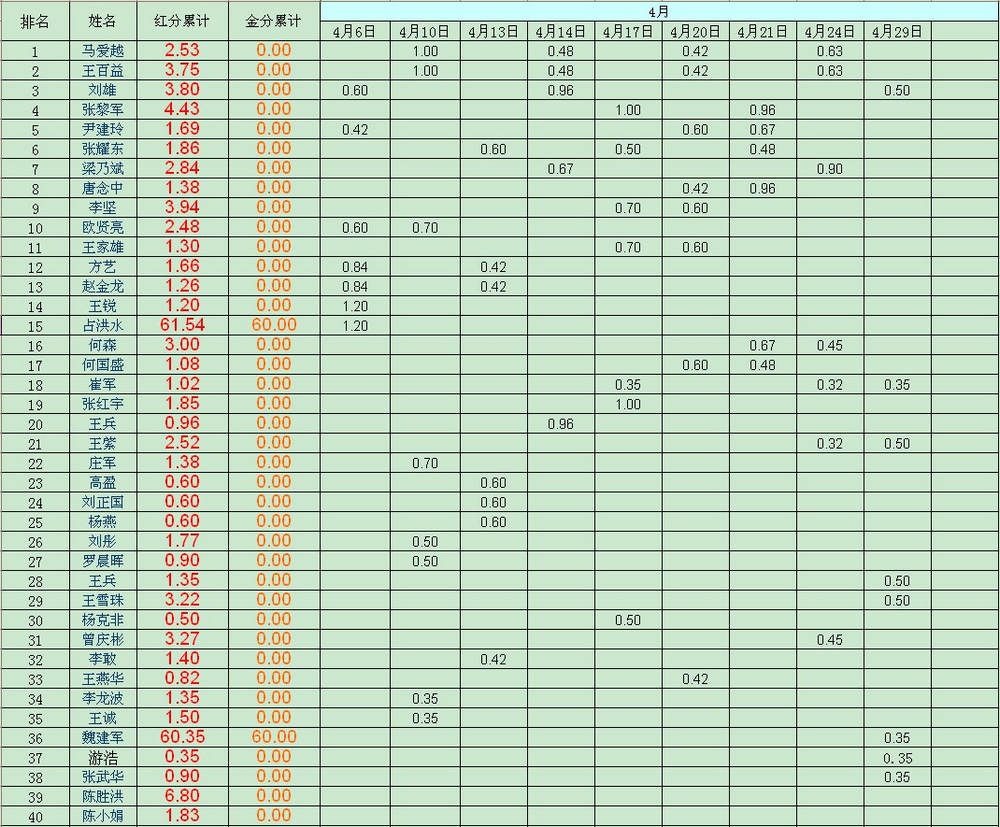 四月大师分(隐藏三月,按四月累计大师分排序)